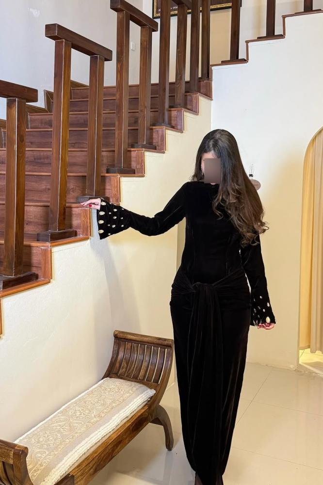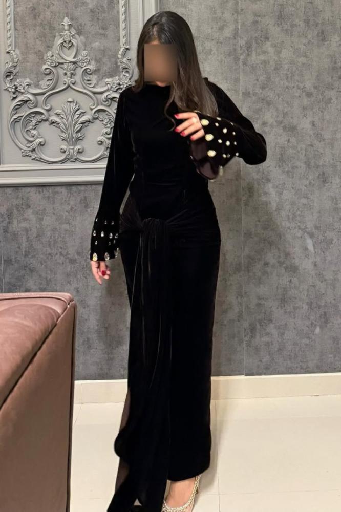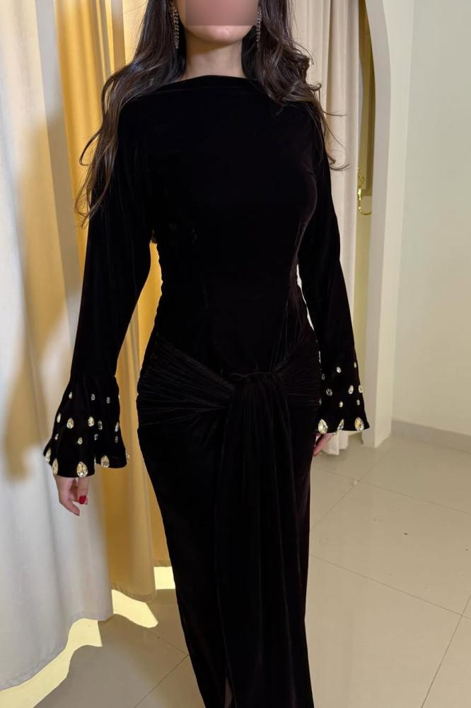 تألقي بجاذبية لا مثيل لها مع هذا الفستان الأسود الراقي، المصمم بقصة أنثوية أنيقة تبرز جمال القوام. يتميز بأكمام طويلة واسعة مزينة بلمسات لؤلؤية تضيف فخامة وجاذبية ساحرة. تصميمه الانسيابي مع عقدة أنيقة في الخصر يمنحك لمسة من الرقي والفخامة. خيار مثالي للسهرات والمناسبات الراقية لإطلالة ملكية لا تُنسى!