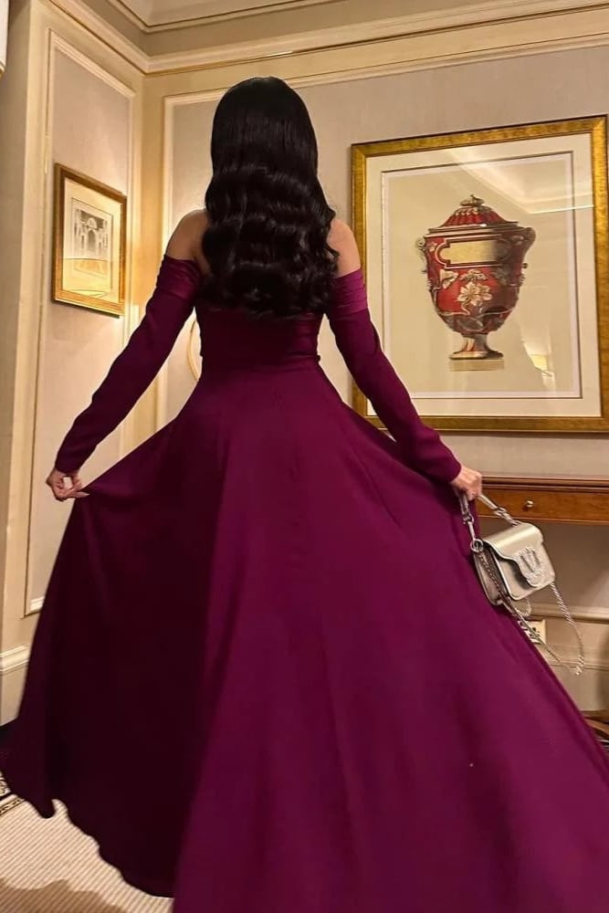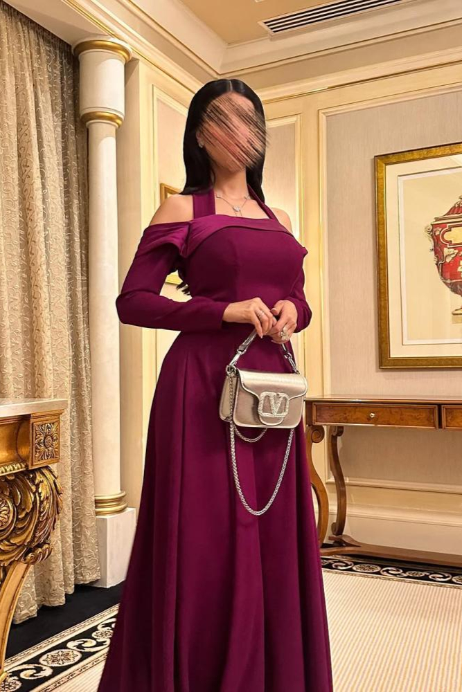 فستان سهرة طويل أوف شولدر مع أكمام طويلة