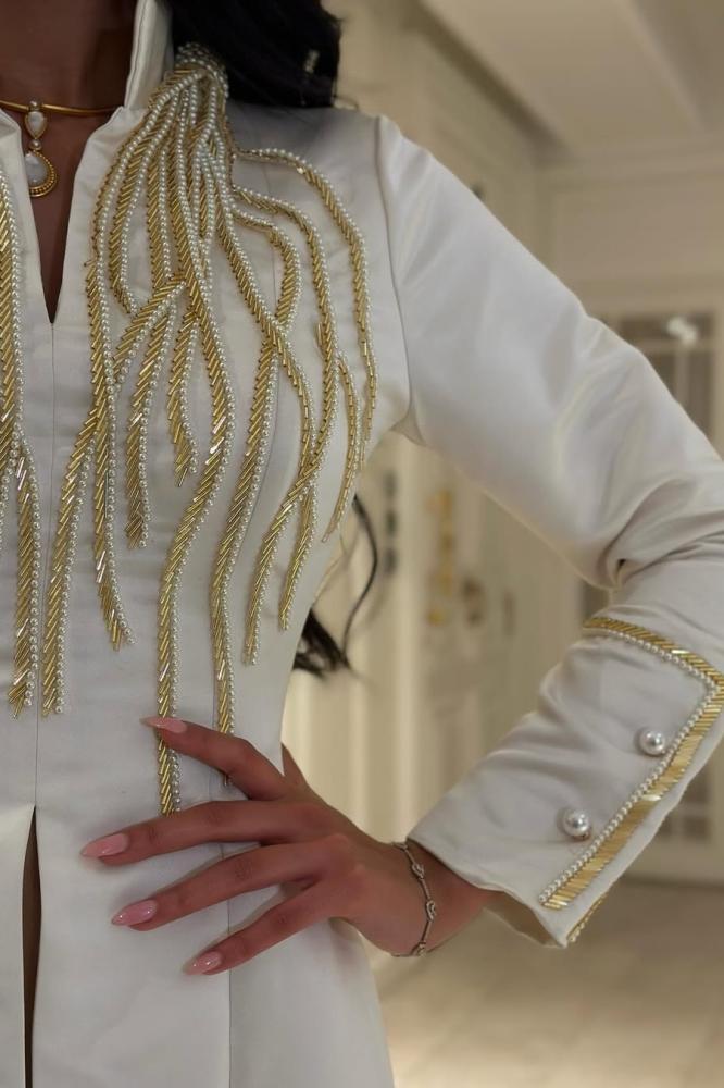 الأكمام الطويلة والتفاصيل الفريدة تجعل منه خيارًا مثاليًا للمناسبات الفاخرة والإطلالات المميزة.