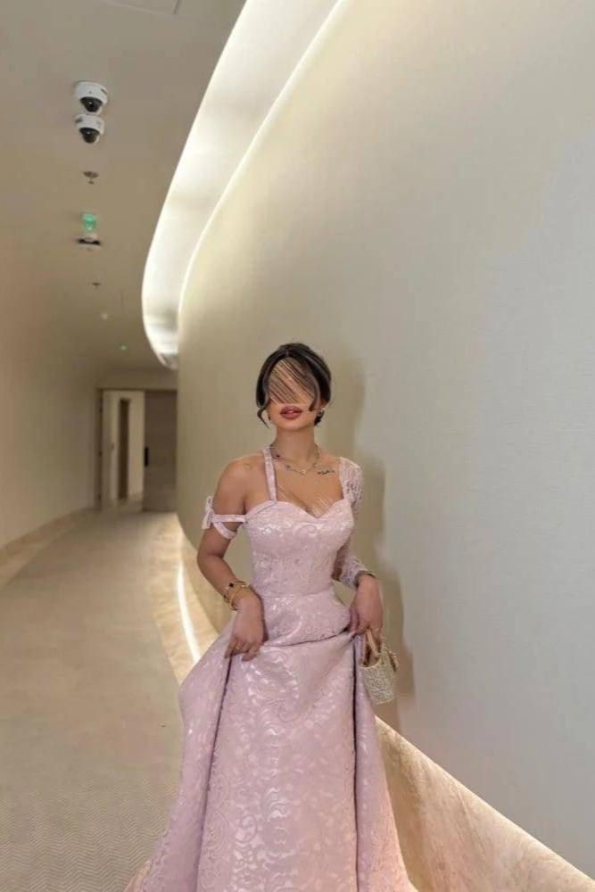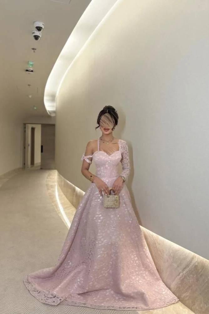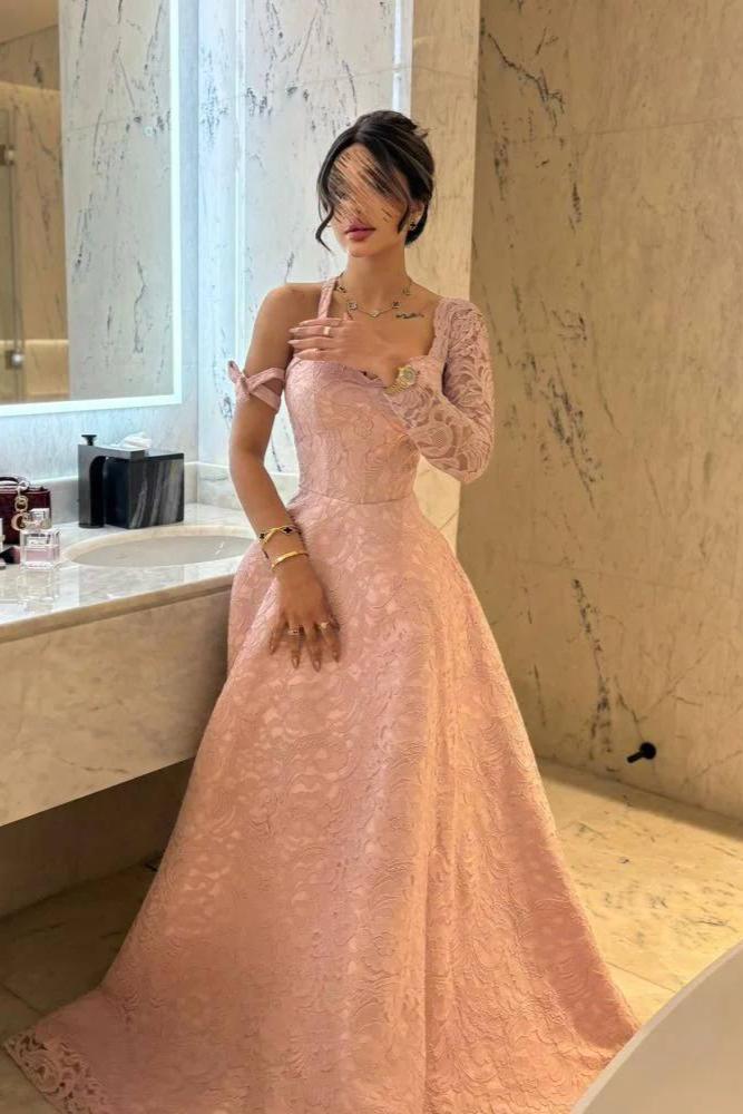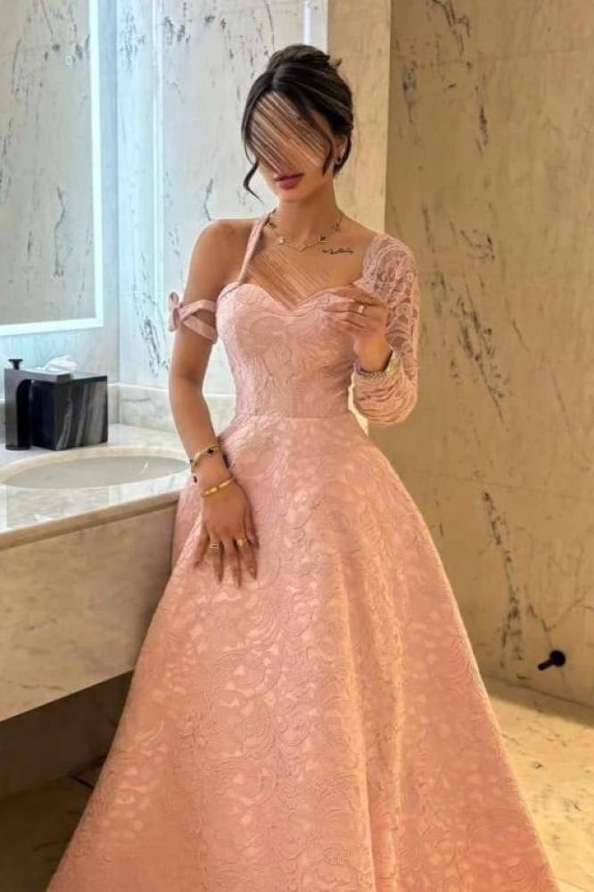 فستان أنيق ناعم، يتميز بقصة ضيقة عند الخصر تنسدل بانسيابية لتمنح إطلالة أنثوية راقية. يتميز بتفاصيل دانتيل أنيقة تغطي جزءًا من الصدر وأحد الأكمام، مما يضفي لمسة فاخرة. تصميم الكتف المكشوف مع حمالة رفيعة يضفي لمسة عصرية وجذابة، بينما تضيف النقوش البارزة على القماش لمسة أنثوية ساحرة مثالية للسهرات والمناسبات الخاصة.
