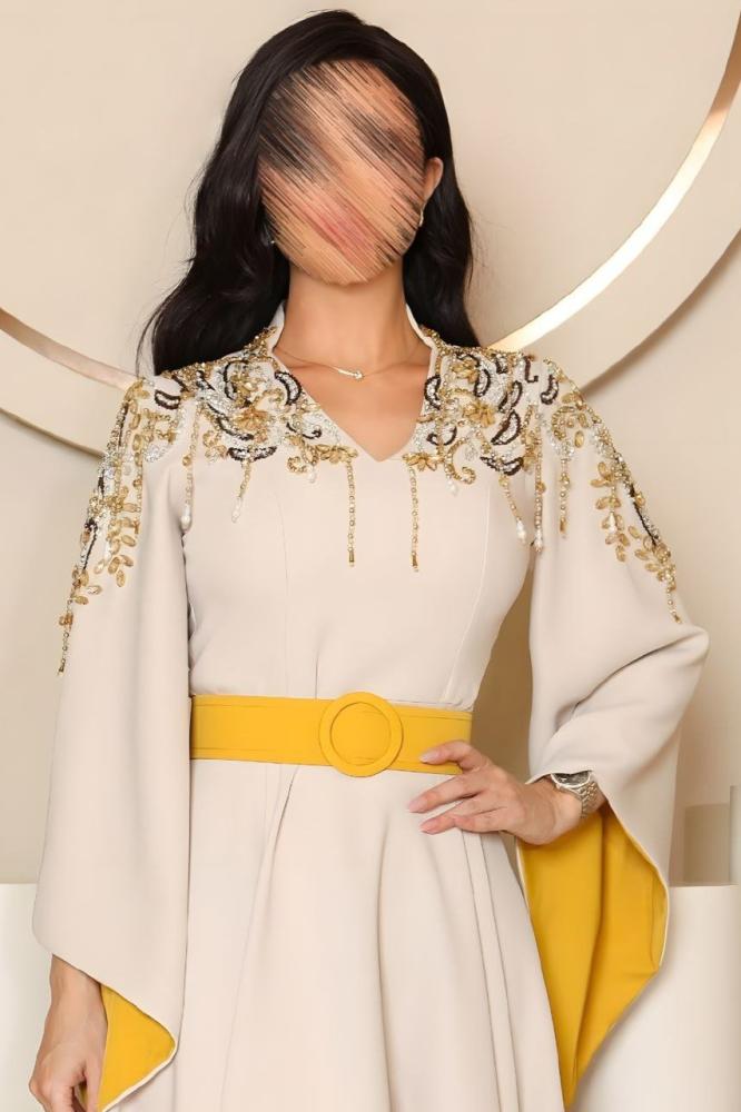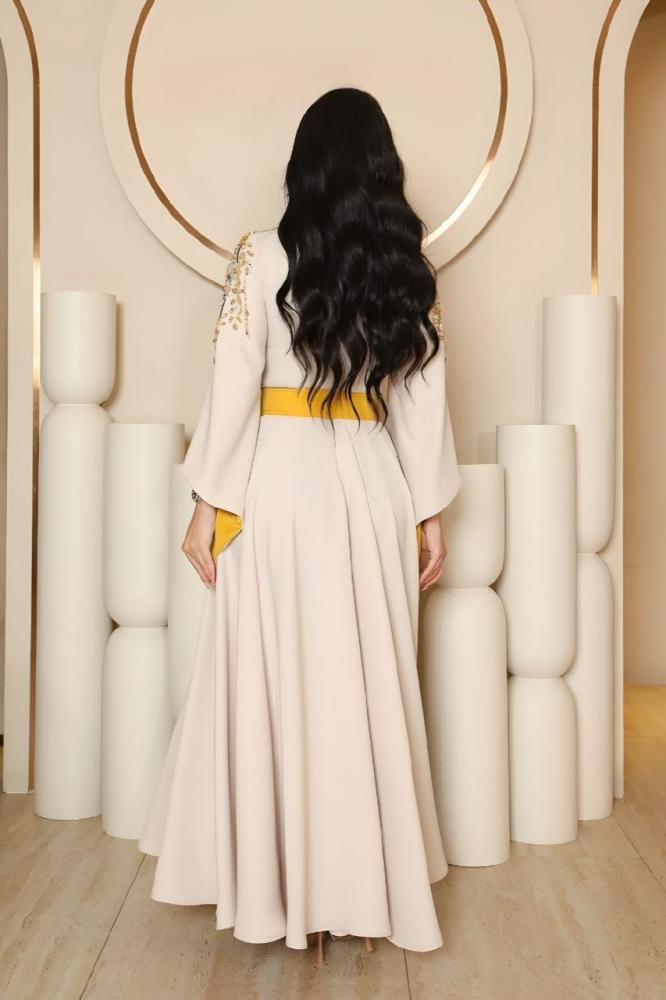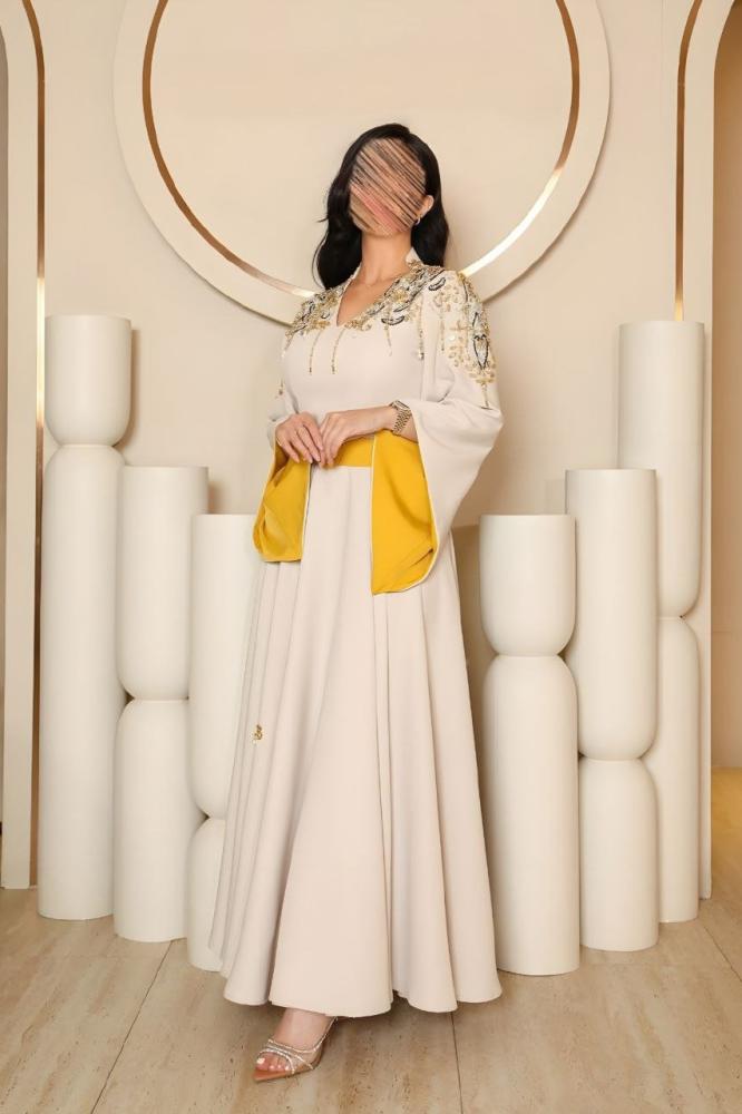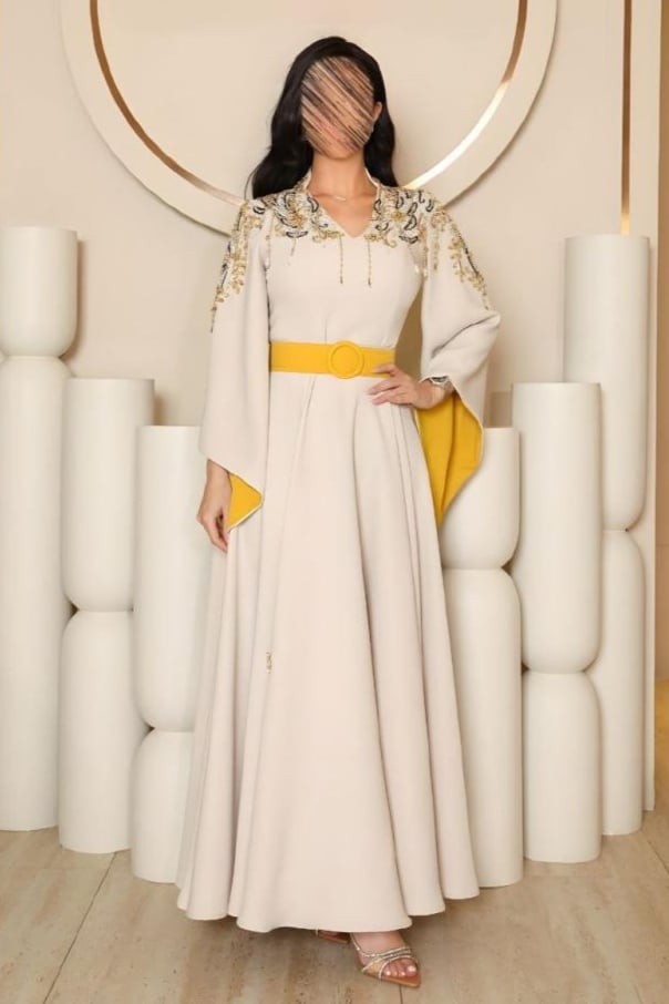 تألقي بجاذبية استثنائية مع هذه الجلابية الفاخرة، المصممة بأكمام واسعة وتطريز أنيق على الأكتاف والصدر يمنحك لمسة من الفخامة.