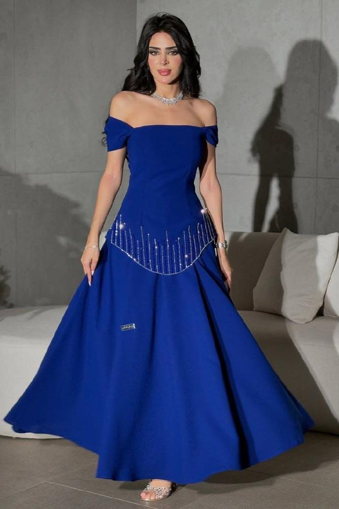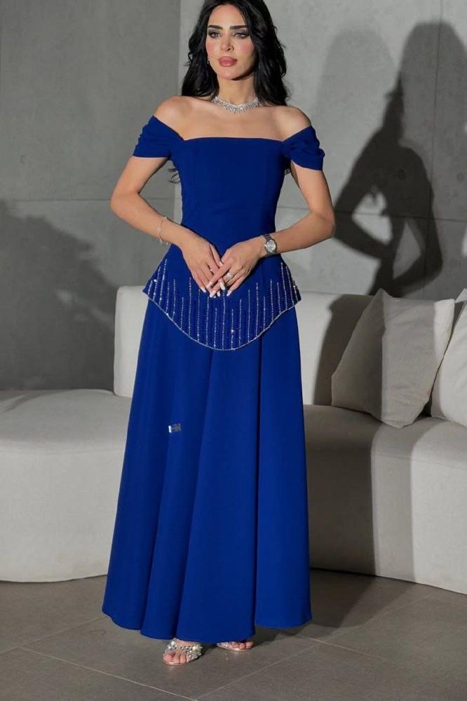 فستان سهرة ناعم يتميز بتصميم أوف شولدر أنيق يبرز جمال الأكتاف بأسلوب راقٍ. يتميز بتفاصيل لامعة عند الخصر تضيف لمسة من الفخامة والبريق، مع قصة ضيقة من الأعلى تتسع بانسيابية نحو الأسفل لتمنحك إطلالة أنثوية جذابة. مثالي للمناسبات الرسمية والسهرات الفاخرة